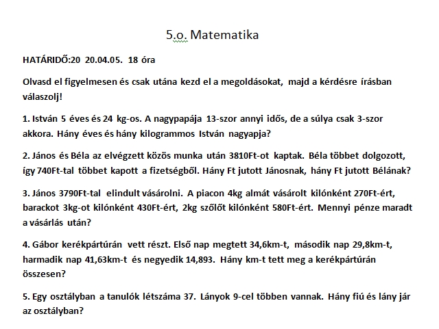 5. osztály matematika 5. osztály 2020. március 16. 0 hozzászólás A galéria nagyobb méretű képeinek megnyitásához kattintson az alábbi fotókra. Lapozásához használhajta a navigációs nyilakat, valamint billentyűzetének jobb és bal gombját. 5. osztály matematika 2020.03.16..jpg 5. osztály matematika 2 2020.03.16..jpg 5. osztály Matematika 2020.03.19..jpg 5.2. osztály Matematika2020.03.19..jpg MATEMATIKA 5.1. osztály 2020.03.22..jpg 5.2. osztály Matematika2020.03.22..jpg MATEMATIKA 5.1. osztály 2020.03.25..jpg Matematika 5.1 osztály2020.03.29..jpg Matematika 5.2 osztály2020.03.29..jpg Matematika 5.2. osztály2020.04.02..png Matematika5.1osztály2020.04.06..jpg Matematika5.2osztály2020.04.06..jpg MATEMATIKA 5.1osztály 2020.04.15..jpg MATEMATIKA 5.1. osztály 2020.04.20..jpg MATEMATIKA 5.2 OSZTÁLY2020.04.20..jpg MATEMATIKA 5.1 osztály 2020.04.27.jpg MATEMATIKA5.1 osztály2020.05.04..jpg Matematika5.1-1 osztály2020.05.04..jpg matematika 5.1osztály2020.05.07..jpg matematika 5.1 osztály 2020.05.11..jpg matematika5.2.osztály2020.05.14..jpg matematika 5.1 osztály2020.05.28..jpg PARASZNYA NAGYOK 11. FELADAT (06.03..jpeg matematika5.1 osztály2020.06.08..jpg Hozzászólások