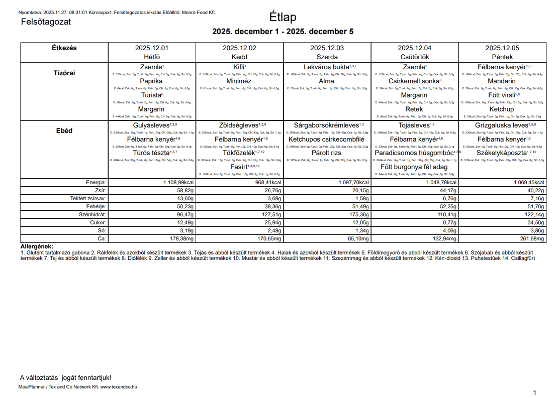 Étlap 12.01 - 12.05 kantin 2025. november 30. 0 hozzászólás A galéria nagyobb méretű képeinek megnyitásához kattintson az alábbi fotókra. Lapozásához használhajta a navigációs nyilakat, valamint billentyűzetének jobb és bal gombját. Étlap 12.01-12.05.png Hozzászólások