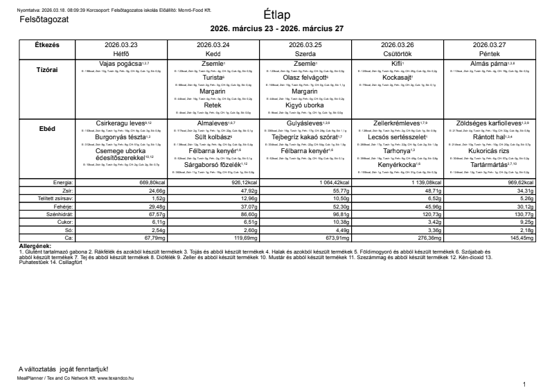 Étlap 03.23 - 03.27 kantin 2026. március 22. 0 hozzászólás A galéria nagyobb méretű képeinek megnyitásához kattintson az alábbi fotókra. Lapozásához használhajta a navigációs nyilakat, valamint billentyűzetének jobb és bal gombját. Étlap 0323-0327.png Hozzászólások