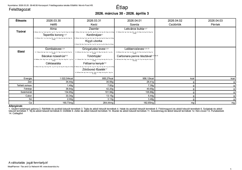 Étlap 03.30 - 04.03 kantin 2026. március 30. 0 hozzászólás A galéria nagyobb méretű képeinek megnyitásához kattintson az alábbi fotókra. Lapozásához használhajta a navigációs nyilakat, valamint billentyűzetének jobb és bal gombját. Étlap 0330-0403.png Hozzászólások